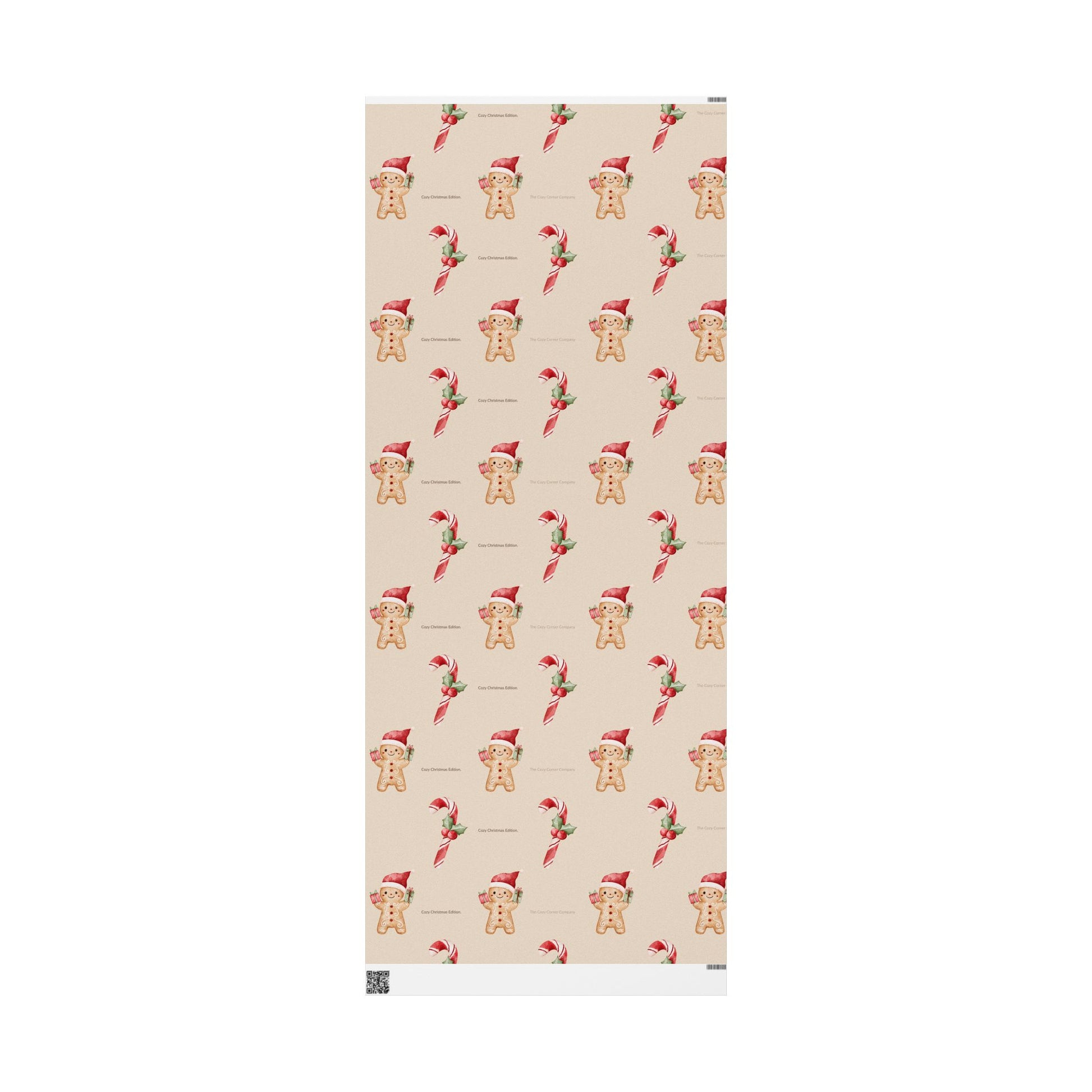 Cozy Christmas Edition Wrapping Paper – Gingerbread & Candy Cane Gift Wrap | Holiday Cozy Corner Collection