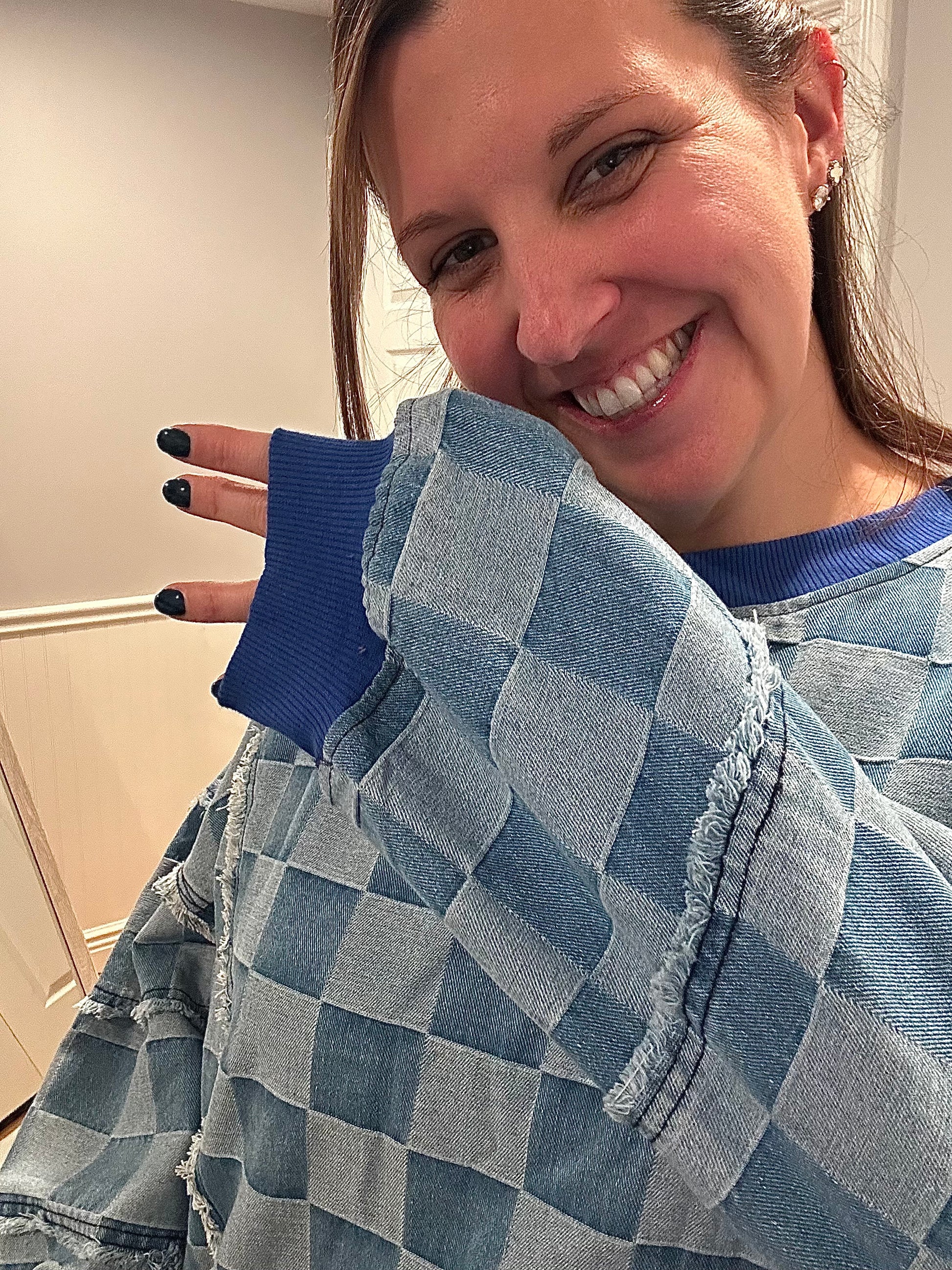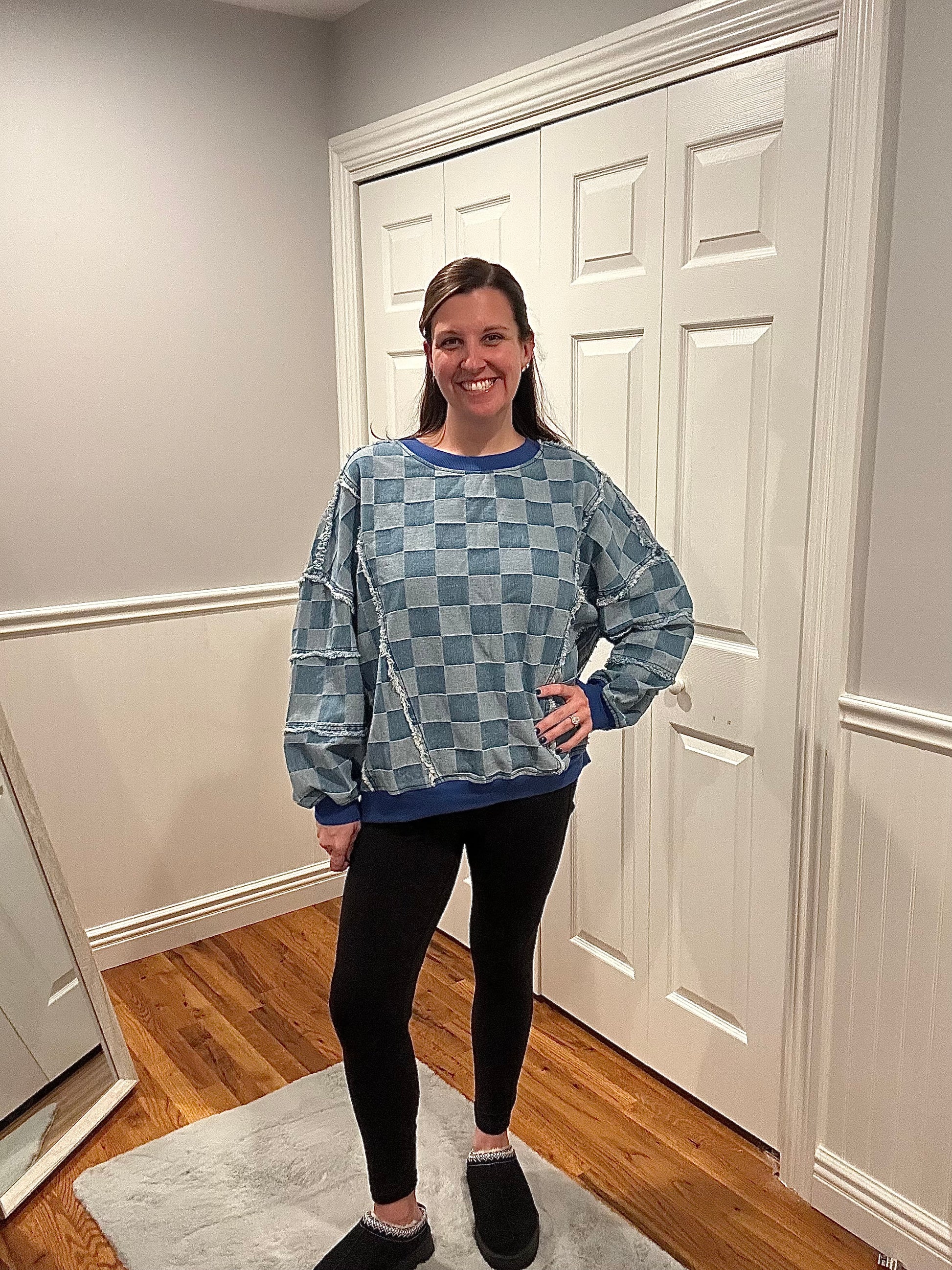 Meet your new off-duty favorite: the Cozy Check Pullover — where casual comfort meets standout style. Designed with an oversized fit and a soft checkerboard denim-inspired texture, this pullover brings cozy ease and a touch of street-chic charm to your everyday lineup.